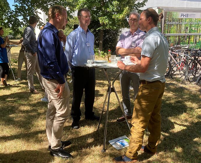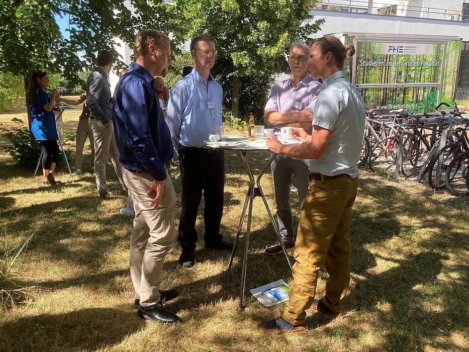 Am 28.06.2022 fand die Mitgliederversammlung des von der Fachhochschule Erfurt koordinierten WIR! – Bündnisses Holz-21-regio (https://www.holz-21-regio.de) statt. Die rund 60 Veranstaltungsteilnehmer:innen zeigten reges Interesse, sich am strukturellen Wandel in der Thüringer Waldregion aktiv zu beteiligen. Die Vertreter:innen – mehrheitlich Thüringer Handwerksbetriebe, Forschungsinstitute, Verbände, Kommunen, Waldbesitzer und Industrieunternehmen – informierten sich im Green Campus über die aktuellen Entwicklungen im Bündnis und knüpften neue Kontakte. Zur Vorbereitung des nächsten Projektcalls von Holz-21-regio wurden zwei Workshops zu erforderlichen Innovationen im Holzbau durchgeführt. Die Diskussionsergebnisse fließen in die Gestaltung des nächsten Projektförderaufrufes zum Innovationsfeld „Zukunftsbaustoff Holz und Gesellschaft“ ein, der am 15.07.2022 veröffentlicht werden soll. Alle Mitglieder im WIR! -Bündnis Holz-21-regio können sich dann mit einer Forschungsskizze um Fördermittel bewerben. Insbesondere sind auch die einschlägig forschenden Mitglieder der FH Erfurt im Rahmen des in Etablierung befindlichen Kompetenzzentrums Holz, Ressourcenmanagement und Nachhaltigkeit gefragt, ihre Forschungskompetenzen einzubringen.