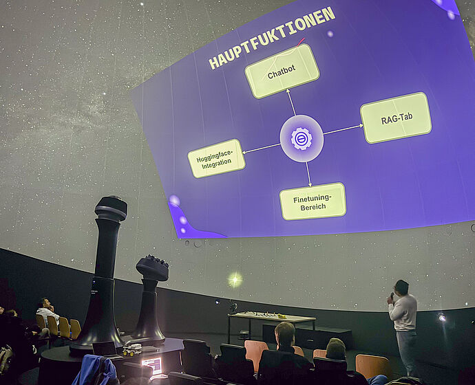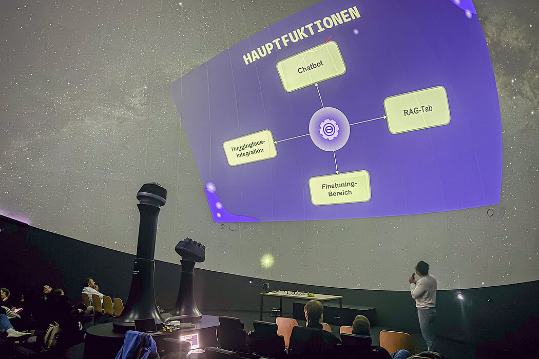 Alle Projekte konnten in der beeindruckenden und immersiven Atmosphäre der ZEISS Planetariumskuppel vorgestellt und unmittelbar veranschaulicht werden, wodurch die innovativen Ansätze für alle Anwesenden direkt erlebbar wurden. Die Mitarbeitenden von ZEISS zeigten sich erfreut und beeindruckt von den Ergebnissen und lobten insbesondere den klar sichtbaren Mehrwert der Zusammenarbeit zwischen Wissenschaft und Praxis. Die Veranstaltung verdeutlichte eindrucksvoll, wie praxisorientierte Ausbildung und industrielle Zusammenarbeit gemeinsam wegweisende Lösungen hervorbringen können.