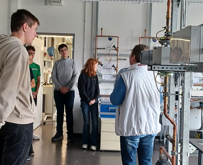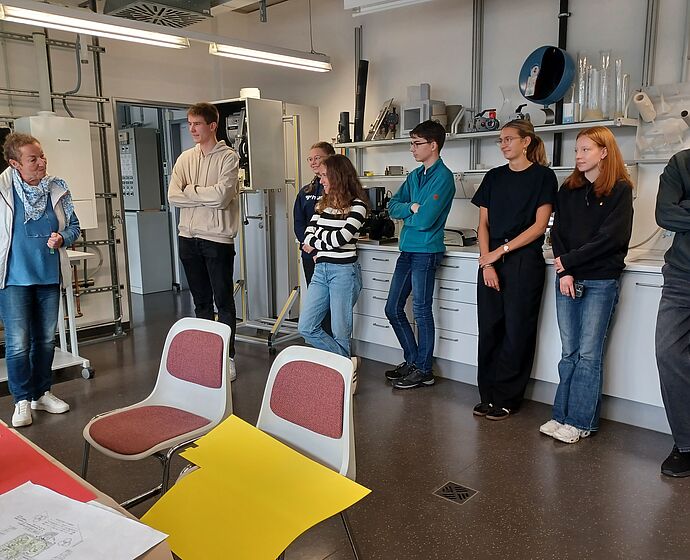 Antworten auf diese und andere Fragen erhielten die Stipendiat:innen der Stiftung aus erster Hand, als sie am 10.10.2024 die Fachhochschule Erfurt mit ihren Laboren kennenlernten. Das Zentrum für studentiche und akademische Angelegenheiten (ZSA) der FH Erfurt empfing die Schüler:inenn am 10.10.2024 an der Hochschule. Der Besuch in der Fakultät Gebäudetechnik und Informatik, bspw. bei Laboringenieurin Sibylle Seidel, gehörte zum Programm.