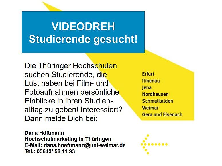 Die Thüringer Hochschulen suchen Studierende, die Lust haben bei Film- und Fotoaufnahmen persönliche Einblicke in ihren Studienalltag zu geben!