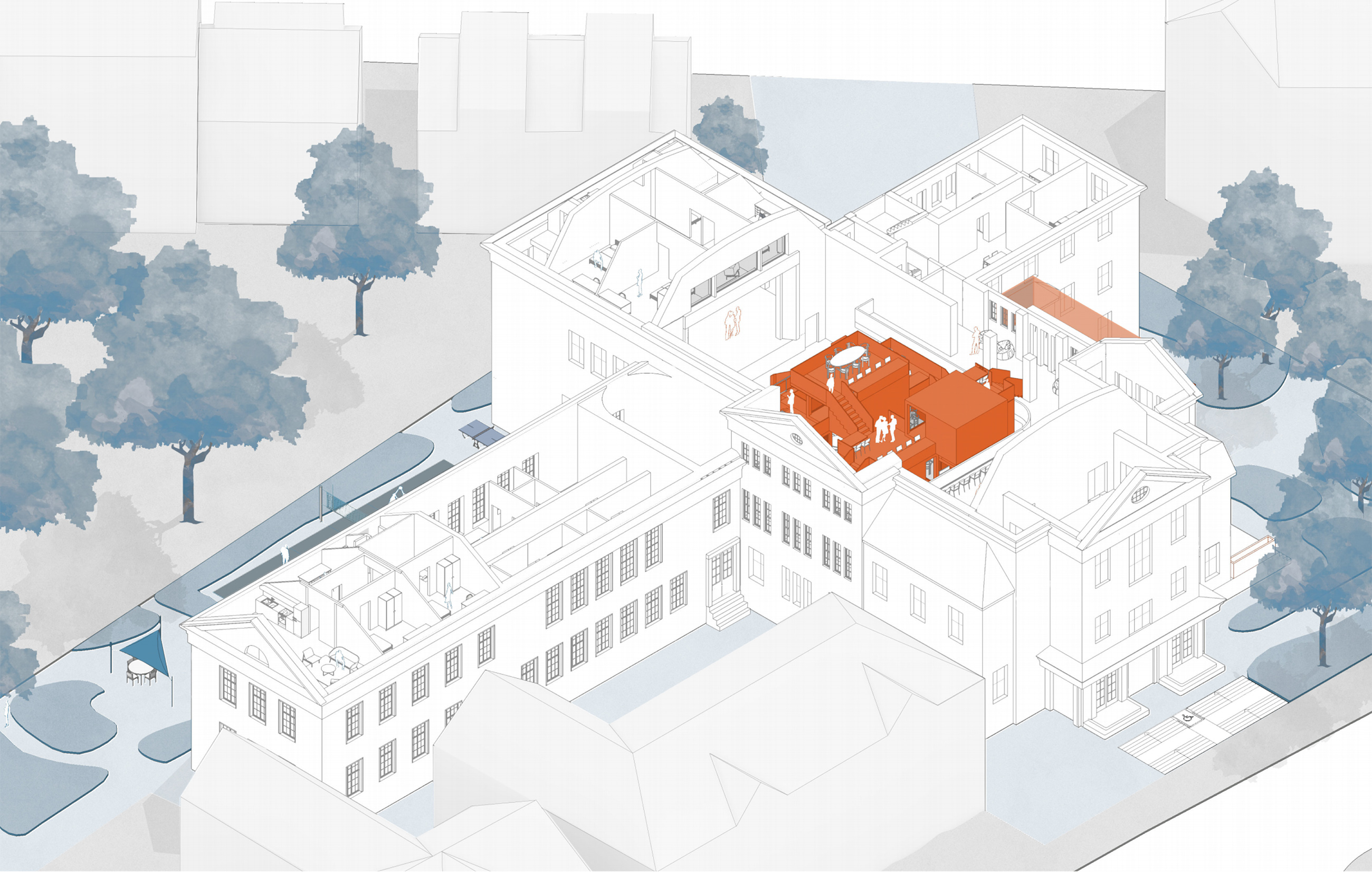 Über die programmatischen Aspekte hinaus war ein wichtiges Ziel der Entwürfe, architektonische Konzepte und bauliche Interventionen zu entwickeln, die einerseits die historische Bausubstanz achten, andererseits mutig das vorhandene Raumpotential und den Spielraum für Veränderungen ausloten. Art und Maß der baulichen Eingriffe, Aufwand und Kosten wurden diskutiert, temporäre gegen permanente Umbaumaßnahmen abgewogen und darüber hinaus eine architektonisch prägnante Sprache gesucht, die der jeweiligen neuen Nutzung Charakter und Strahlkraft verleiht.
