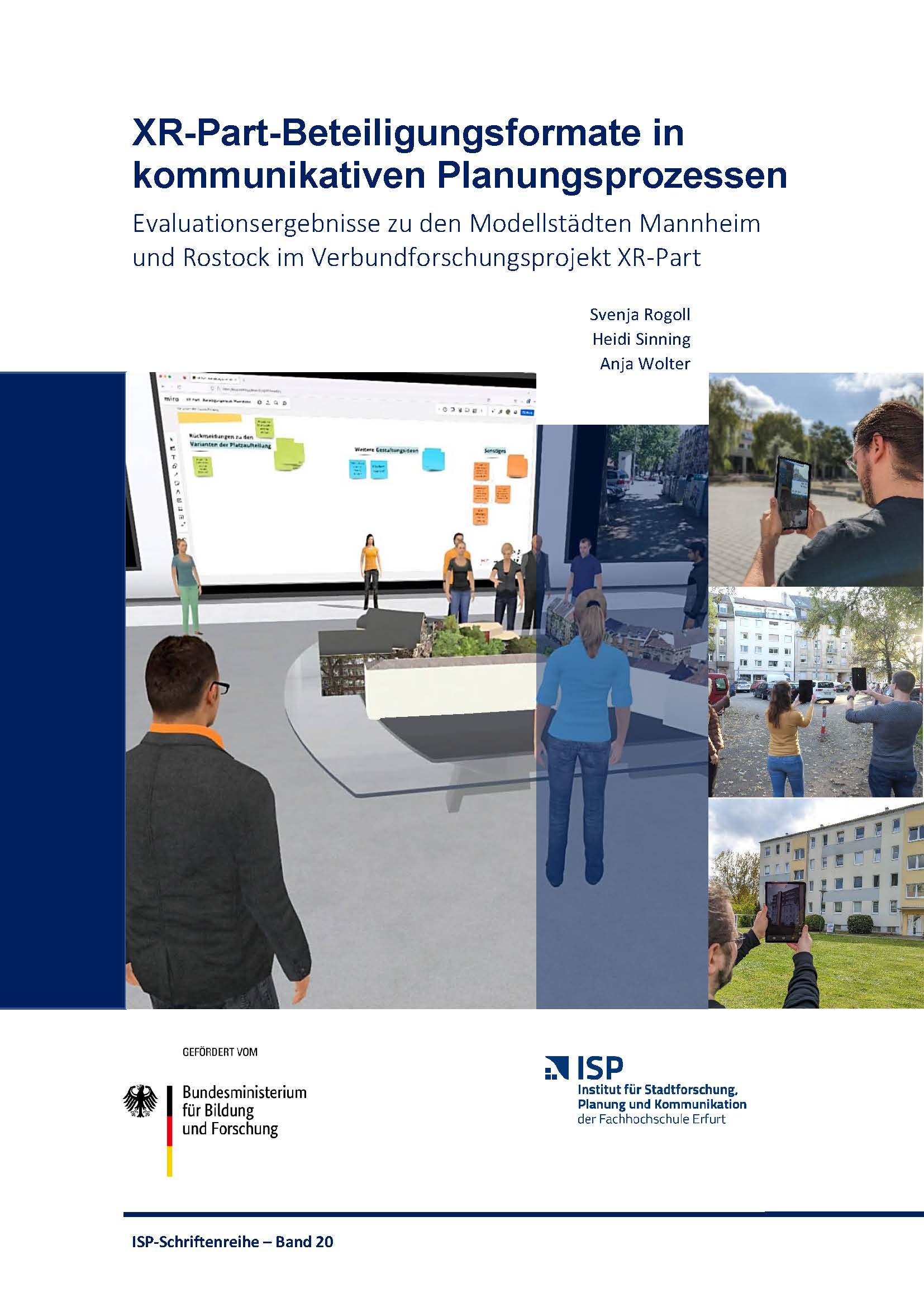 Der Bericht „XR-Part-Beteiligungsformate in kommunikativen Planungsprozessen. Evaluationsergebnisse zu den Modellstädten Mannheim und Rostock im Verbundforschungsprojekt XR-Part“ ist in der ISP-Schriftenreihe unter https://isp.fh-erfurt.de/isp-schriftenreihe als Open Access-Publikation abrufbar.
