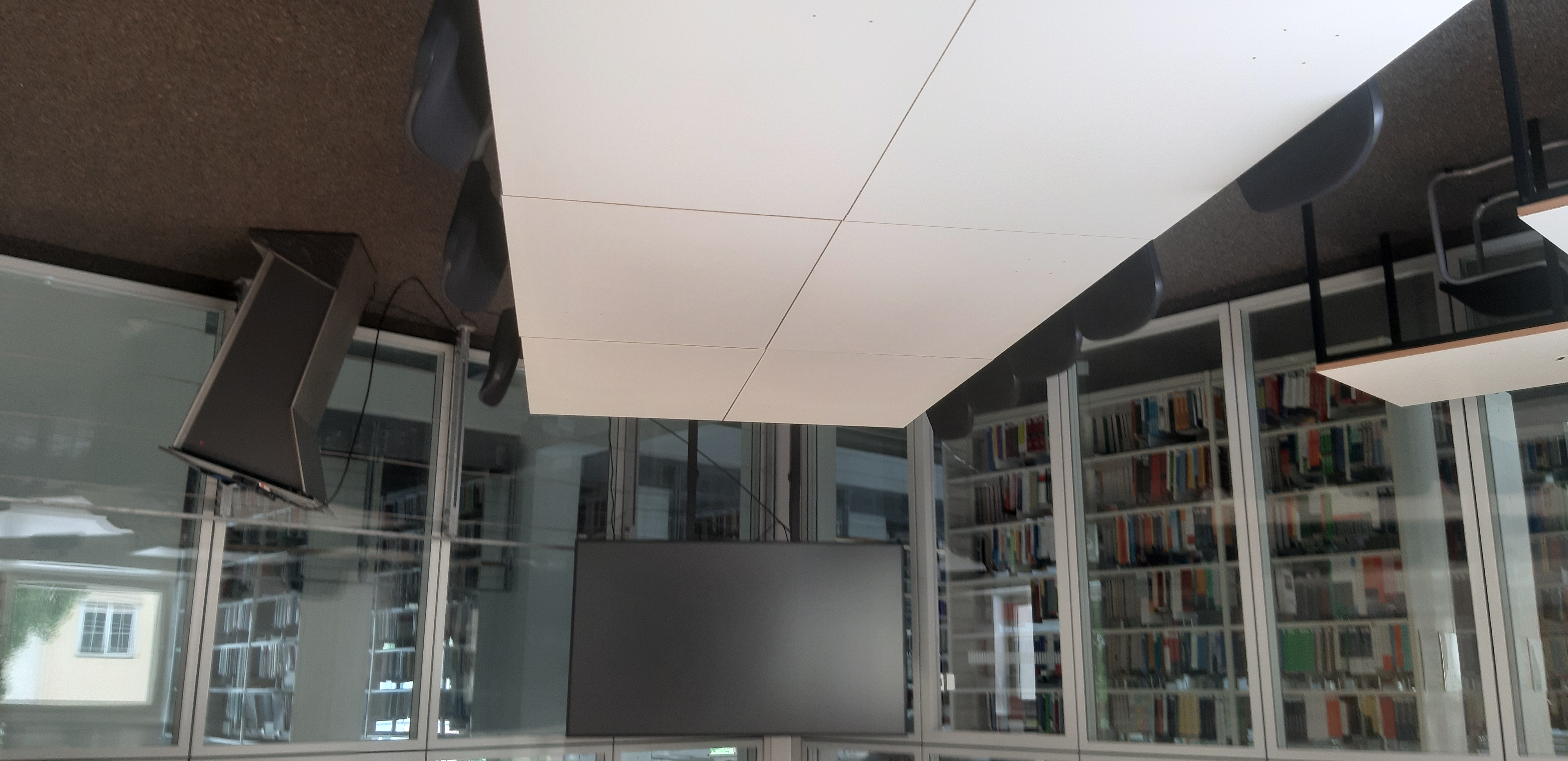 Die Bibliothek stellt ab sofort einen weiteren Gruppenarbeitsraum mit Präsentationstechnik (Monitor) im 1. OG zur Verfügung. Der Gruppenarbeitsraum kann auch von größeren Gruppen von bis zu 10 Personen genutzt werden.