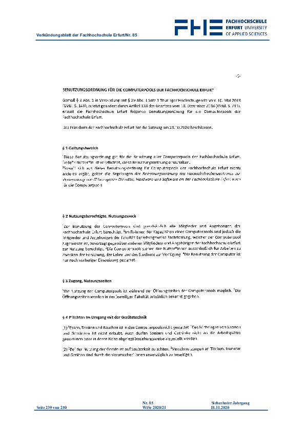 Fachrichtungen der FH Erfurt