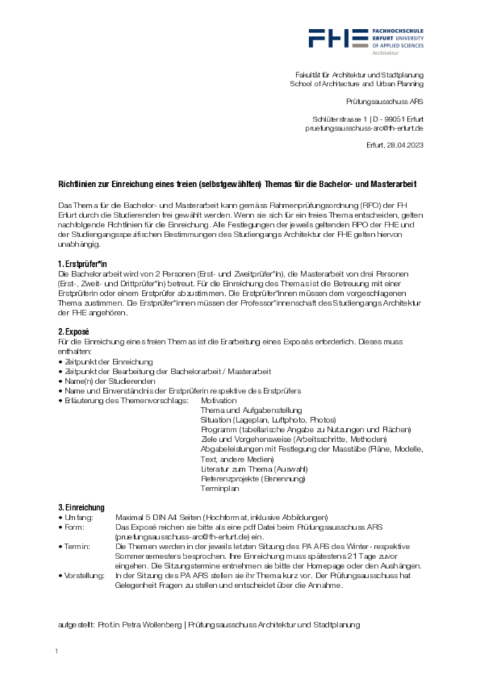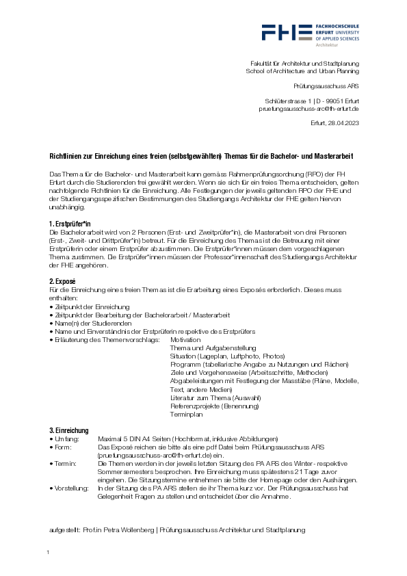 Fachrichtungen der FH Erfurt