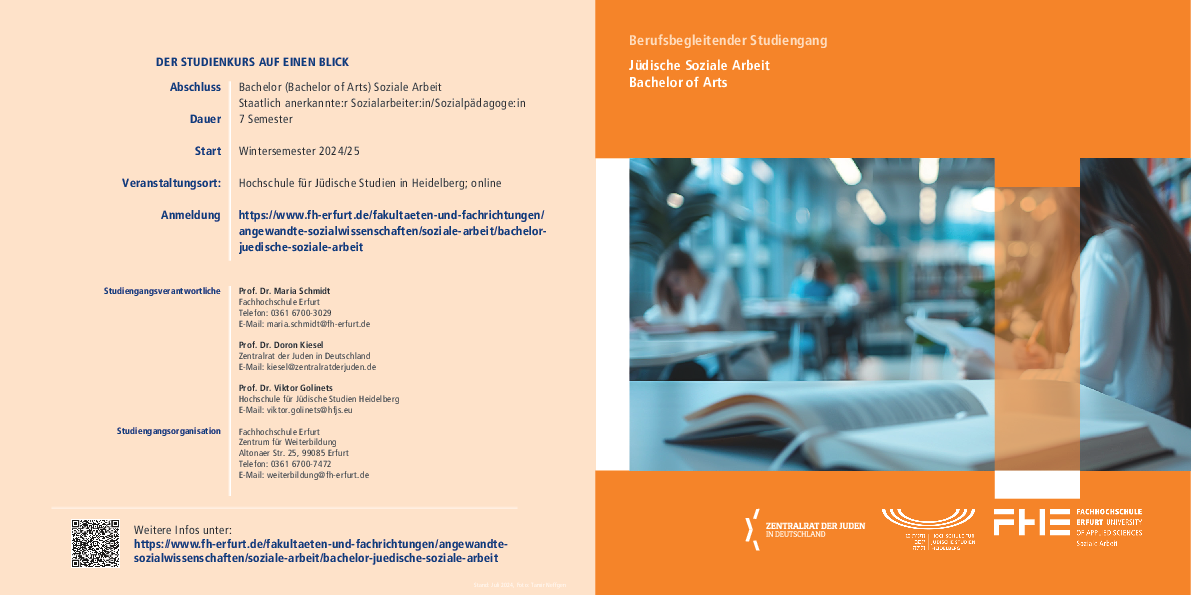 Bachelor Jüdische Soziale Arbeit Einzigartiger Kooperationsstudiengang mit hohem Praxisbezug Der berufsbegleitende 7-semestrige Bachelorstudiengang „Jüdische Soziale Arbeit“ vermittelt Studierenden grundlegende Kompetenzen im Bereich der Sozialen Arbeit und der Jüdischen Religion. Dieser Studiengang