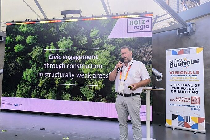 Durch die Entwicklung und Implementierung von Pilotprojekten liefert die FH Erfurt einen nachhaltigen Beweis für die Machbarkeit und Innovationsfähigkeit rund um das Thema Holz. Erfahrungen aus der Lehre und angewandten Forschung führen zu bedarfsorientierten, attraktiven Weiterbildungsangeboten zum Transfer der gewonnenen Erkenntnisse in die Praxis und die Gesellschaft.
