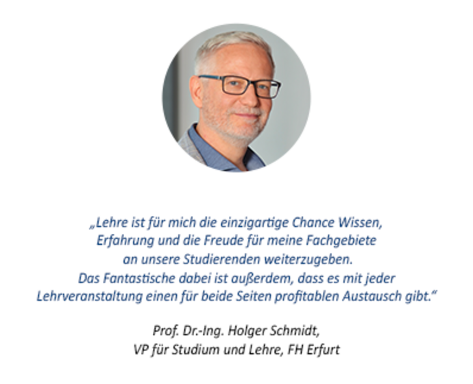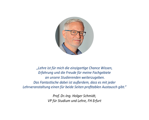 Prof. Dr.-Ing. Holger Schmidt, VP für Studium und Lehre, FH Erfurt13:05 Uhr Lecture „Perspektiven des Lehrens und Lernens“
