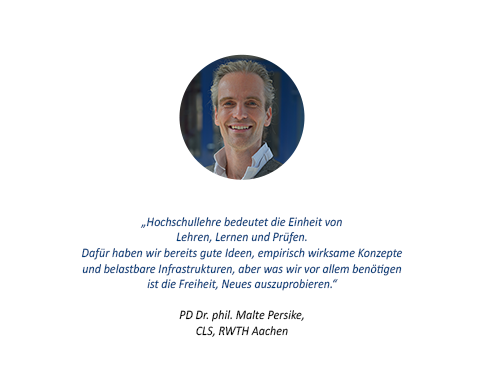 Die Lunch Lecture gestaltet PD Dr. phil. Malte Persike, wissenschaftlicher Leiter des Centers für Lehr- und Lernservices an der RWTH Aachen. Er ist Kernteammitglied im Hochschulforum Digitalisierung und im Auftrag der DFG als Vorsitzender der AG Digitales Lehren, Lernen und Vernetzen der Schwerpunktinitiative Digitale Information der deutschen Wissenschaftsorganisationen tätig.