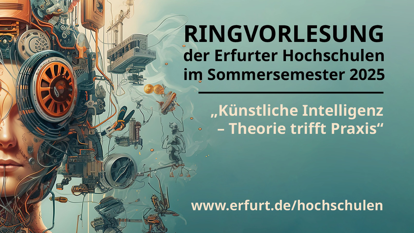 Nach der erfolgreichen Ringvorlesung zum Thema „Künstliche Intelligenz“, zu der die Stadt Erfurt gemeinsam mit den Erfurter Hochschulen im Sommersemester 2024 erstmals eingeladen hatte, wird die Reihe 2025 fortgesetzt.