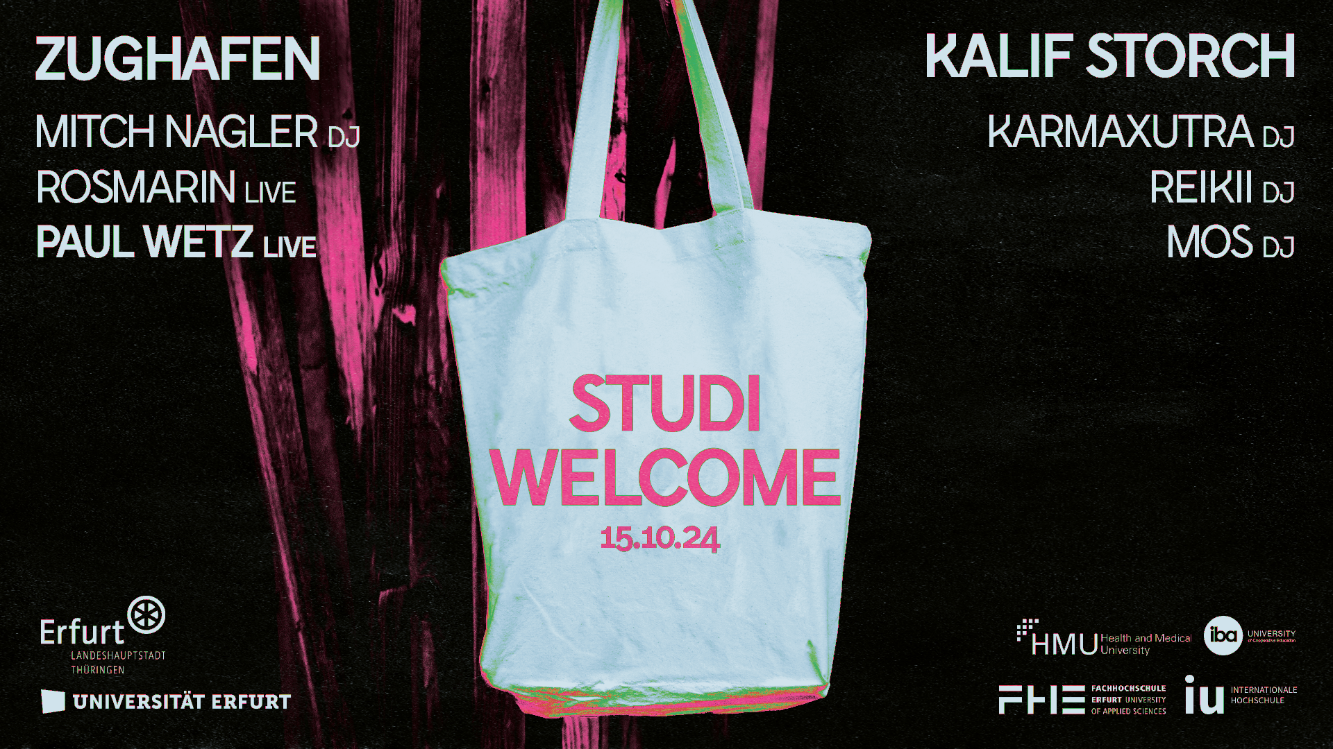 Die Stadt Erfurt begrüßt auch in diesem Jahr wieder alle (Erstsemester-)Studierenden zum Wintersemester mit einem Event im Kulturbahnhof "Zughafen" und im benachbarten "Kalif Storch".
