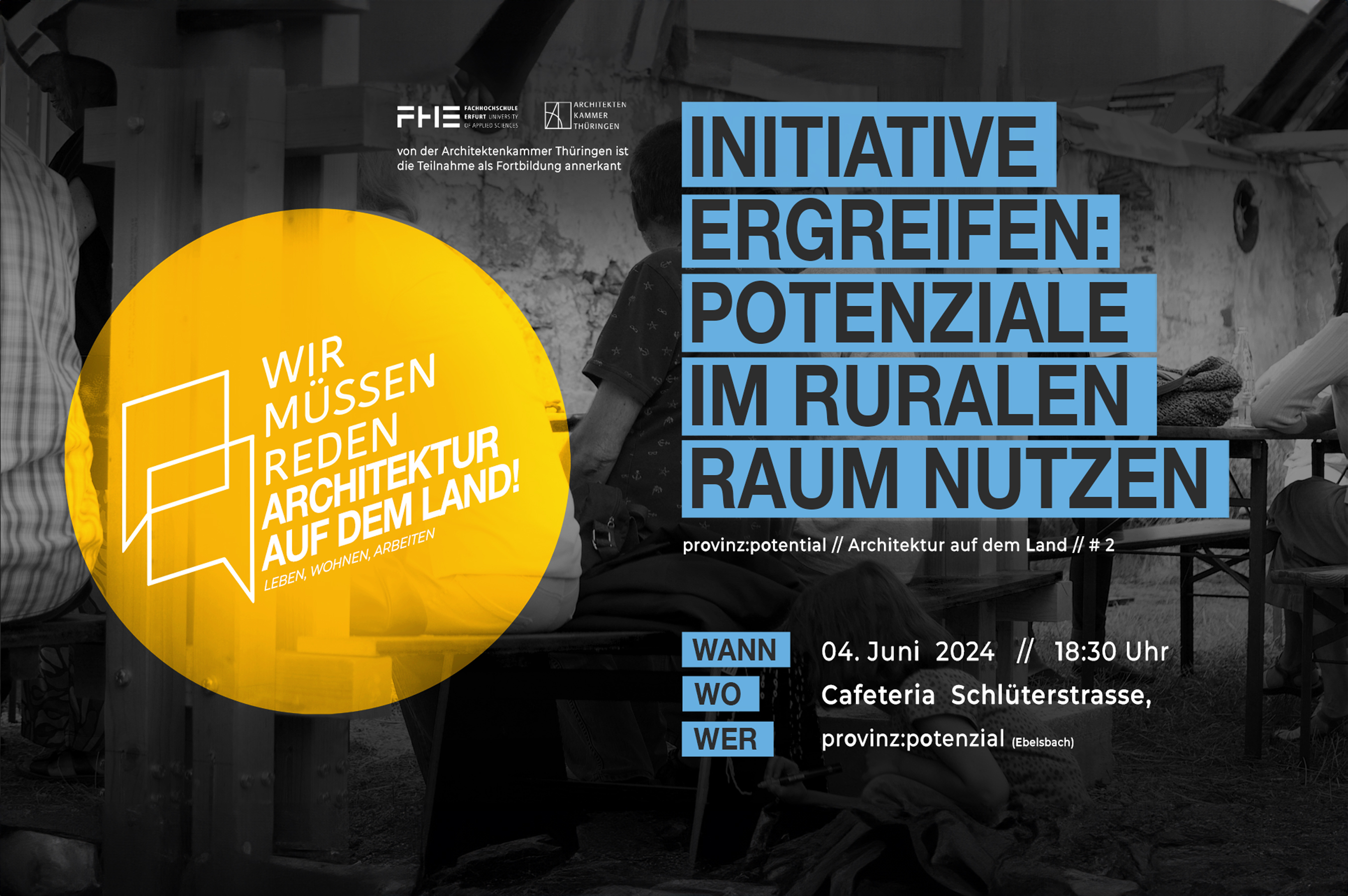 Zu Gast bei dieser Veranstaltung ist das studentische Kollektiv/Initiative provinz:potezial. Wir wollen zusammen Ihre Anfänge in der Architektur, Sicht auf den ruralen Raum, Projekte und Möglichkeiten im Bezug zum ländlichen Raum und dessen verschiedene Maßstäbe, Herausforderungen und Chancen besprechen. Außerdem laden wir euch ein, mit uns zu diskutieren, wie die gewonnenen Erkenntnisse weitergetragen und entwickelt werden können.