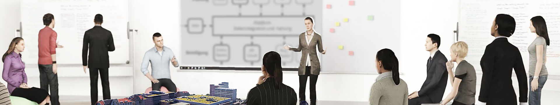 Interaktion in virtuellen Räumen (Augmented Virtuality) soll dabei von jedem beliebigen physischen Ort mit dem eigenen Gerät erfolgen können. Virtuelle Räume zielen auf die Erhöhung der Teilnehmerzahl in kollaborativen Umgebungen, die Entwicklung neuer Beteiligungsformate in virtuellen Räumen, der Integration komplexer Planungsinhalte, der Schaffung neuer Visualisierungs- und Interaktionsformen sowie der einfachen und angenehmen Nutzung der Technologie für unterschiedliche Zielgruppen.