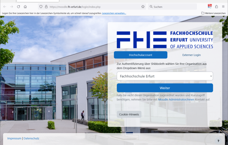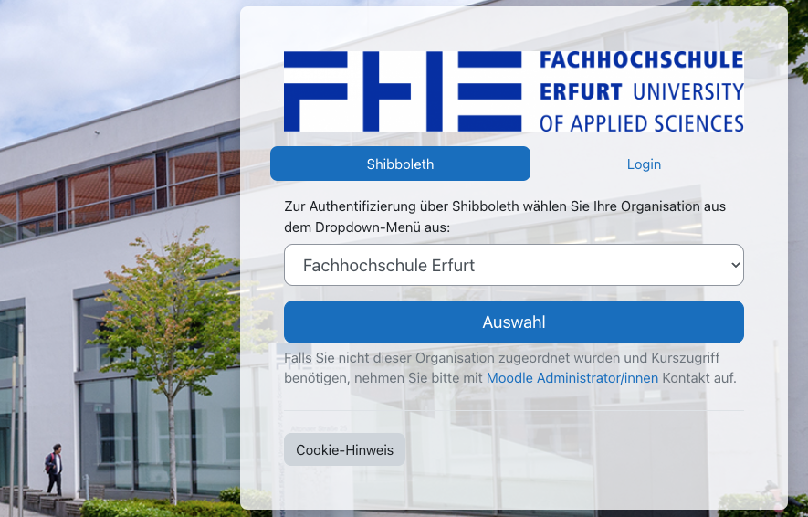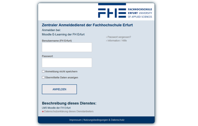 Die Fachhochschule Erfurt betreibt für alle Fachrichtungen und Bereiche eine zentrale E-Learningplattform auf der Basis des Learning Management Systems (LMS) Moodle.