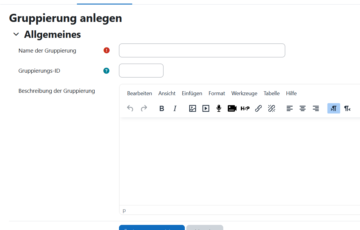 - Wählen Sie "Neue Gruppierung anlegen" und geben Sie einen Namen ein.