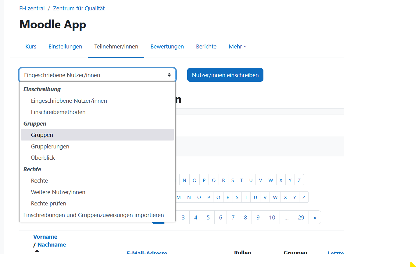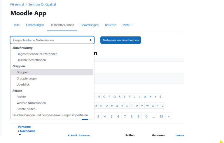 Sobald Gruppen eingerichtet sind, können Sie sie in verschiedenen Moodle-Aktivitäten einsetzen.