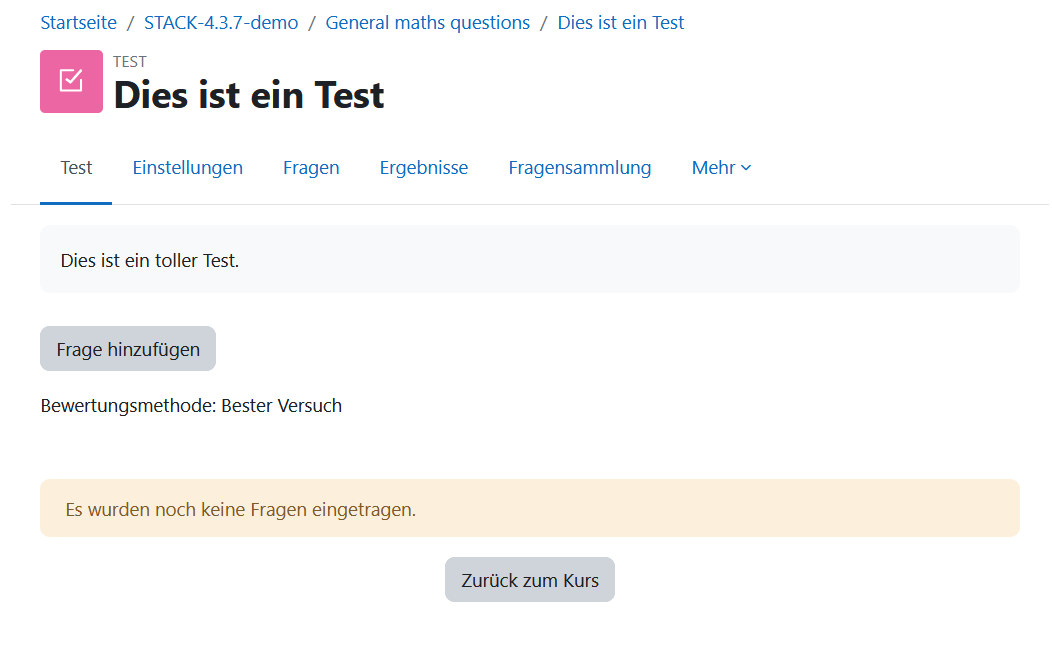 STACK: computergestützte Assessments in Mathematik und verwandten Disziplinen. STACK haben wir eine eigene Seite gewidmet. Hier erfahren Sie alles zum Moodle Fragetyp STACK.