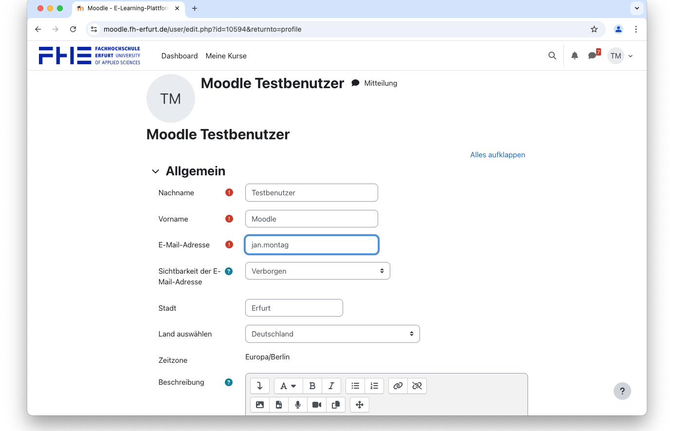 Ihr persönliches Profil in Moodle enthält wichtige Angaben und kann individuell angepasst werden: