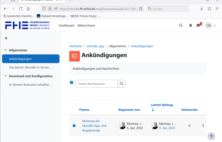 Einige Foren werden von Lehrenden moderiert. Das bedeutet: