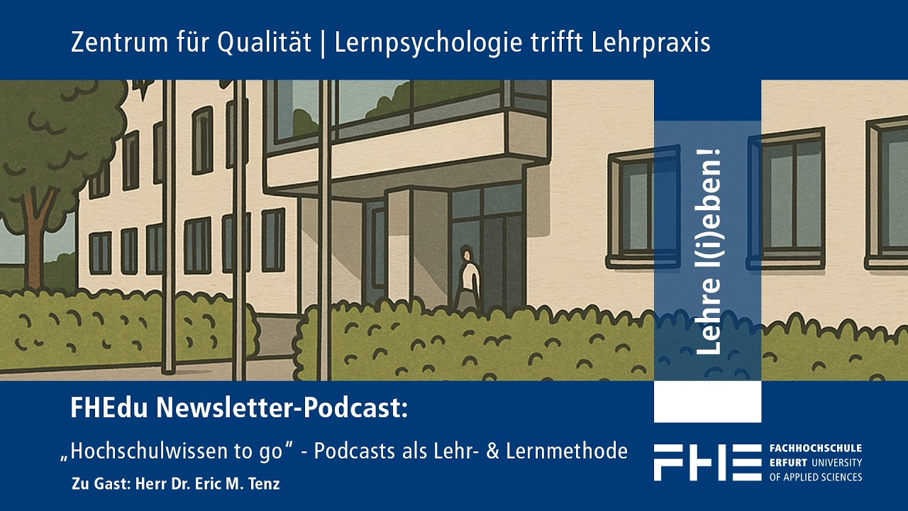 Wie Podcasts gewinnbringend in der Hochschullehre eingesetzt werden können – darüber sprechen Dr. Maria Reichelt, Zentrum für Qualität/Hochschuldidaktik, und Dr. Eric M. Tenz, Vertretungsprofessur Raumentwicklung an der Fakultät Architektur und Stadtplanung der FH Erfurt, im neuen Podcast aus der Reihe Aktivierende Lehrmethoden. Eric Tenz berichtet von den Lernerfahrungen, die die Studierenden und auch er selbst im Zuge der Produktion von Podcasts im Kurs Digitalisierung der räumlichen Planung gemacht haben. Gerade das Spielerische der Podcastproduktion macht diese Methode zu einer Bereicherung, ebenso die Tatsache, dass Podcasts in der Hochschullehre bisher relativ selten eingesetzt werden.